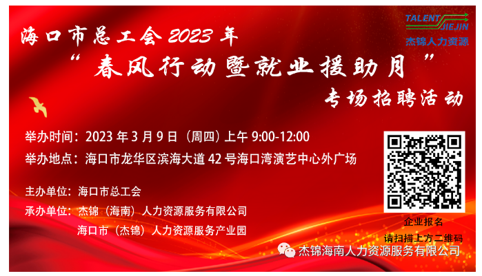 6月24日上午9時-12時,由??谑旋埲A區人力資源和社會保障局、海口市(龍華)人力資源服務產業園主辦,杰...