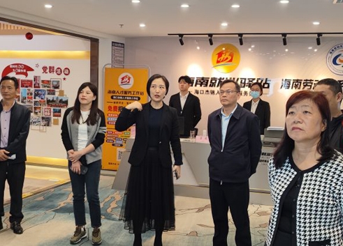 2025年4月23日下午,海口市龍華區市場監督管理局副局長羅瓊、主任李卓燁一行赴??谑校埲A)人力資源服務產...